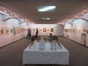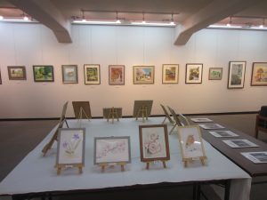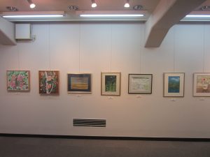 水彩、パステル、油彩等、9名 39点の他、講師の先生方の作品が展示されています。