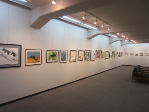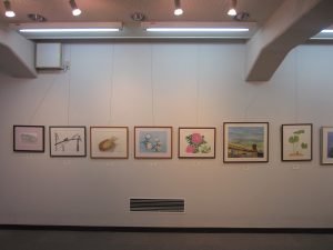 アクリル、水彩、パステル等、会員の作品と、講師である アトリエKOBAYASHIの小林茂規先生の作品が展示されています。